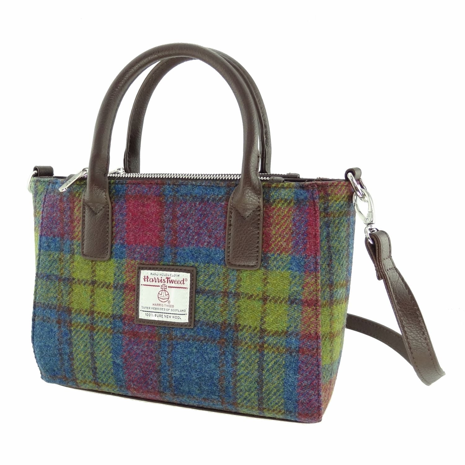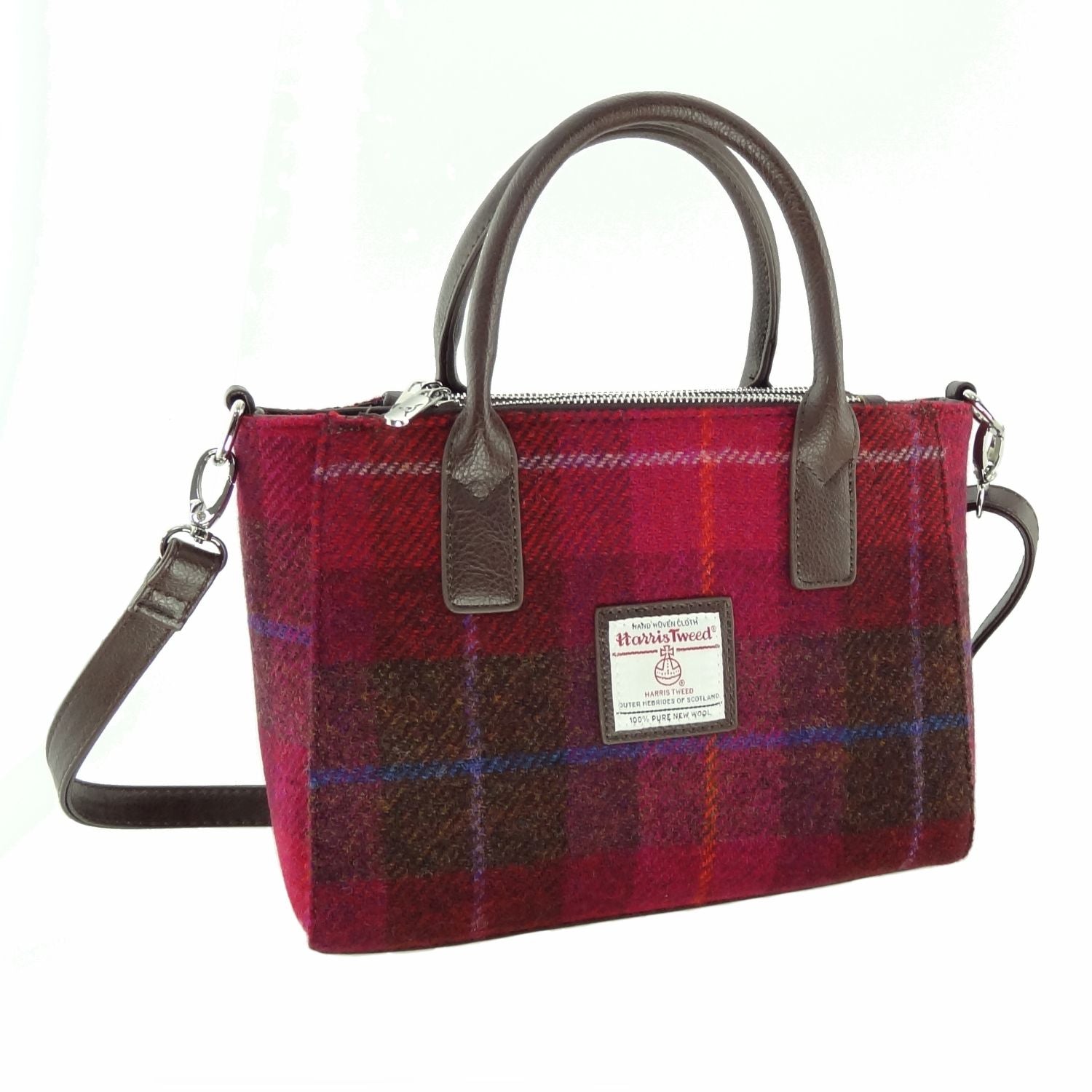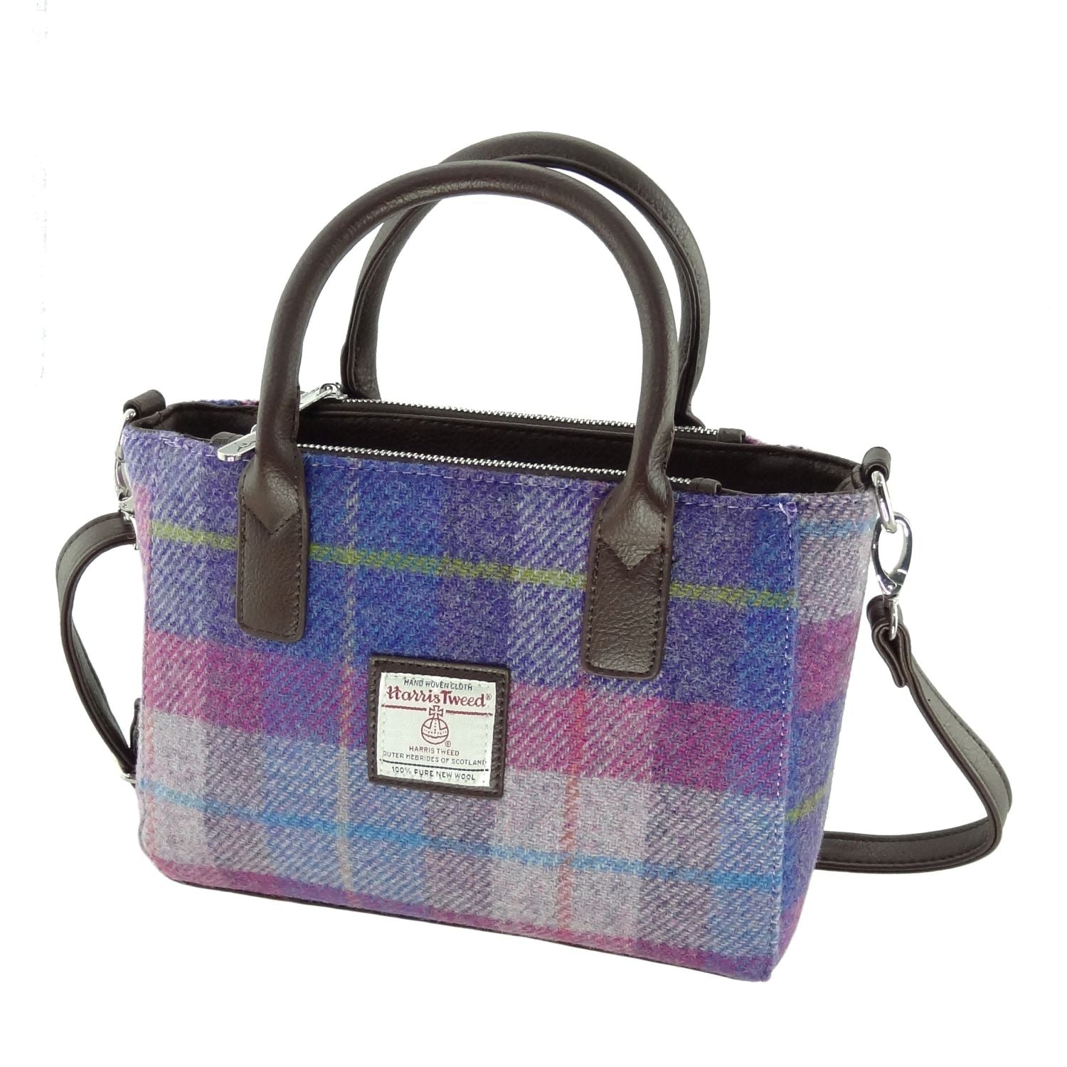Crafted from genuine Harris Tweed, handwoven in the Outer Hebrides, this compact tote combines traditional Scottish craftsmanship with modern practicality.