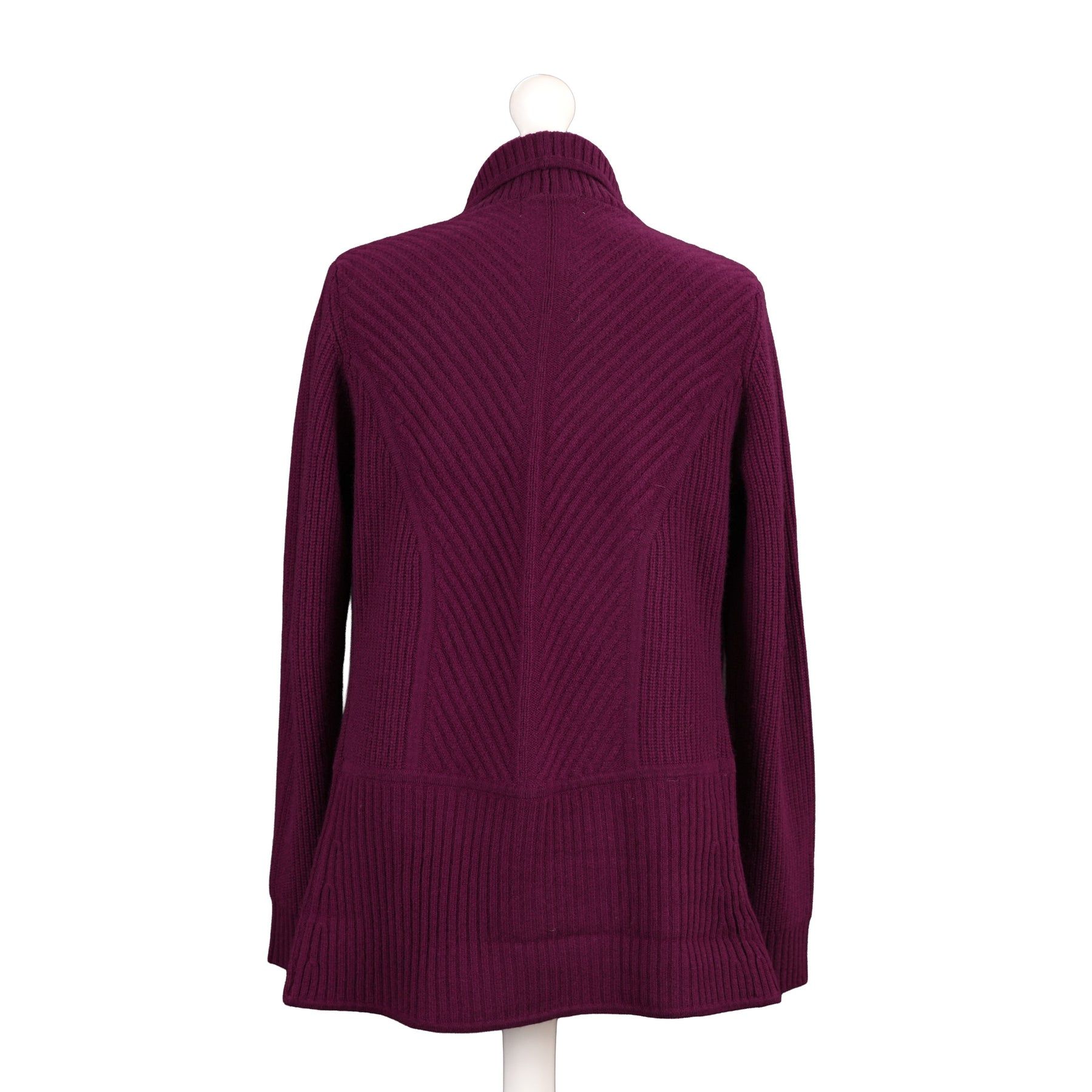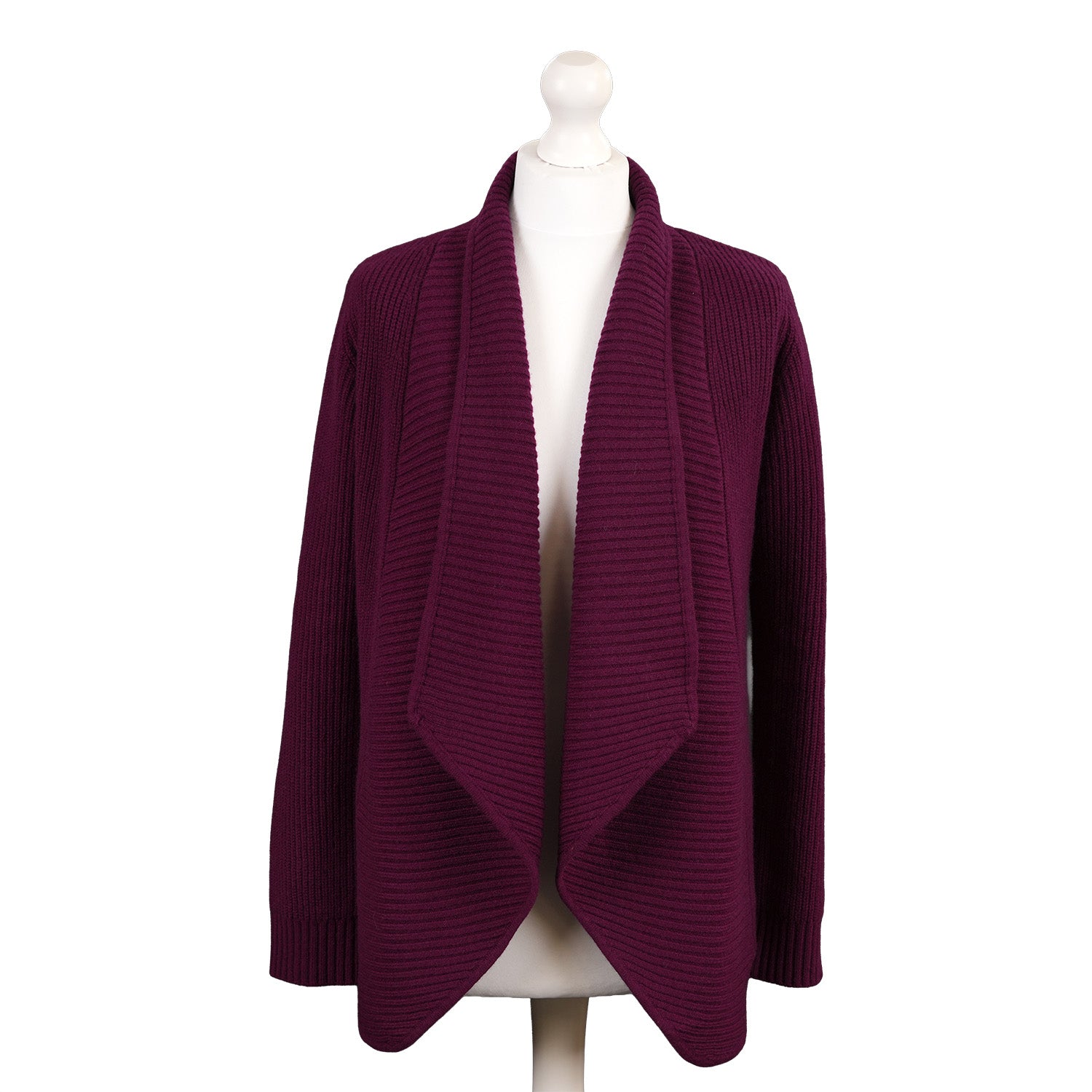 Wrap yourself in effortless elegance with this two-ply cashmere ribbed cardigan in a rich Eminence purple shade. Crafted from 100% pure cashmere, this piece offers the perfect balance of warmth, softness, and breathability, making it a versatile layering option for every season.