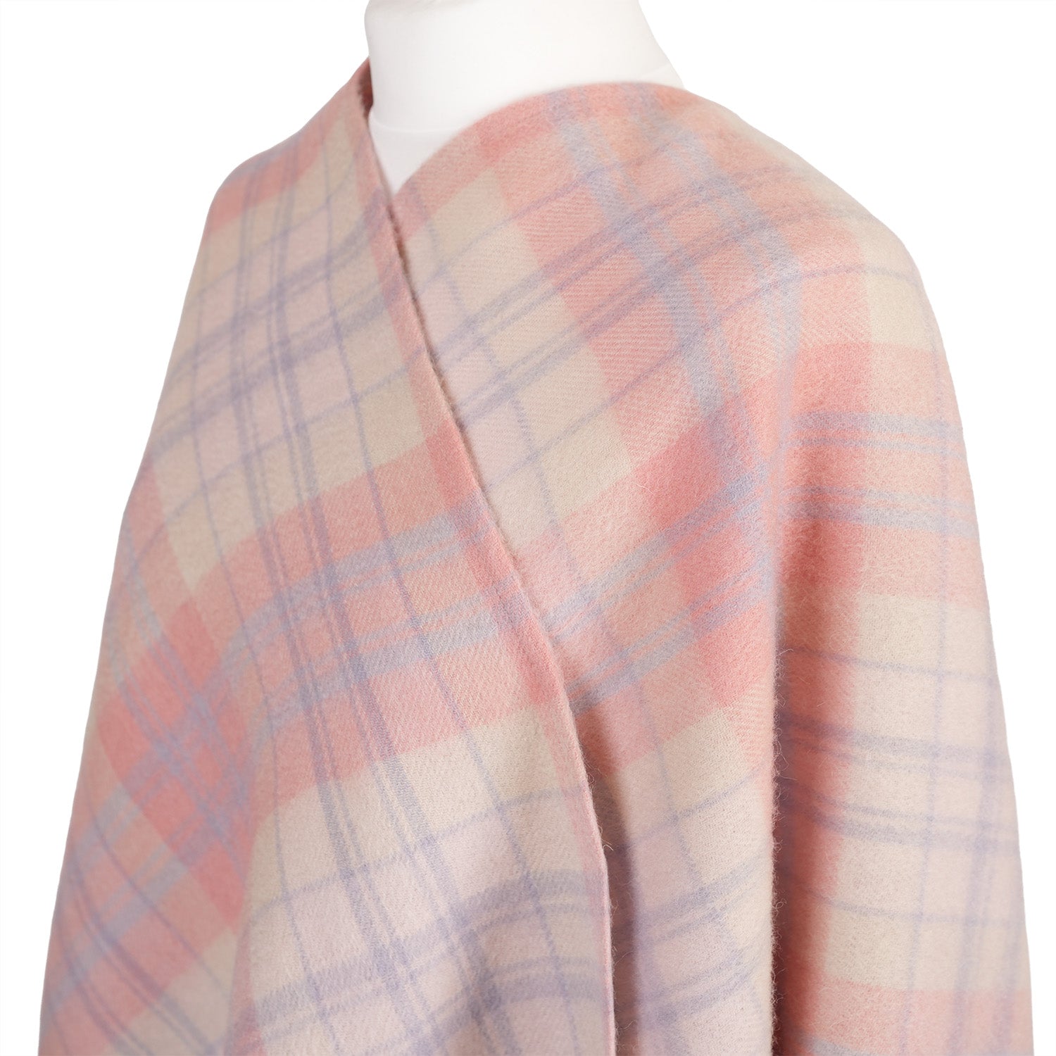 Wrap yourself in softness and timeless style with the EDINBURGH LAMBSWOOL Mini Tartan Cape Macdonald White Mix. Crafted from 100% pure lambswool, this beautifully lightweight cape combines elegance and warmth. Its soft pastel tartan in shades of cream, pink, and lilac adds a touch of femininity, making it perfect for layering all year round.