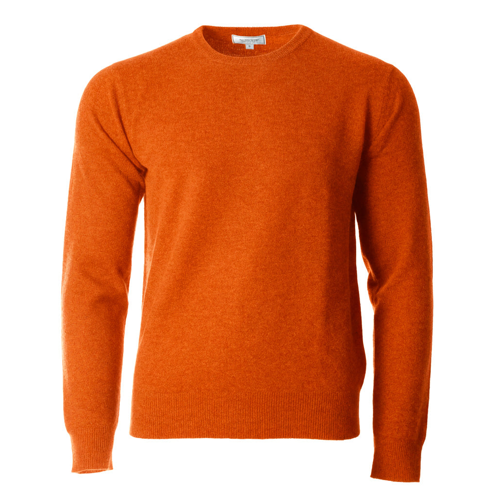 Add a touch of understated luxury to your wardrobe with this men’s crew neck jumper, crafted from 100% pure cashmere. In a striking mandarin orange shade, this timeless piece offers a perfect balance of sophistication and vibrant style.