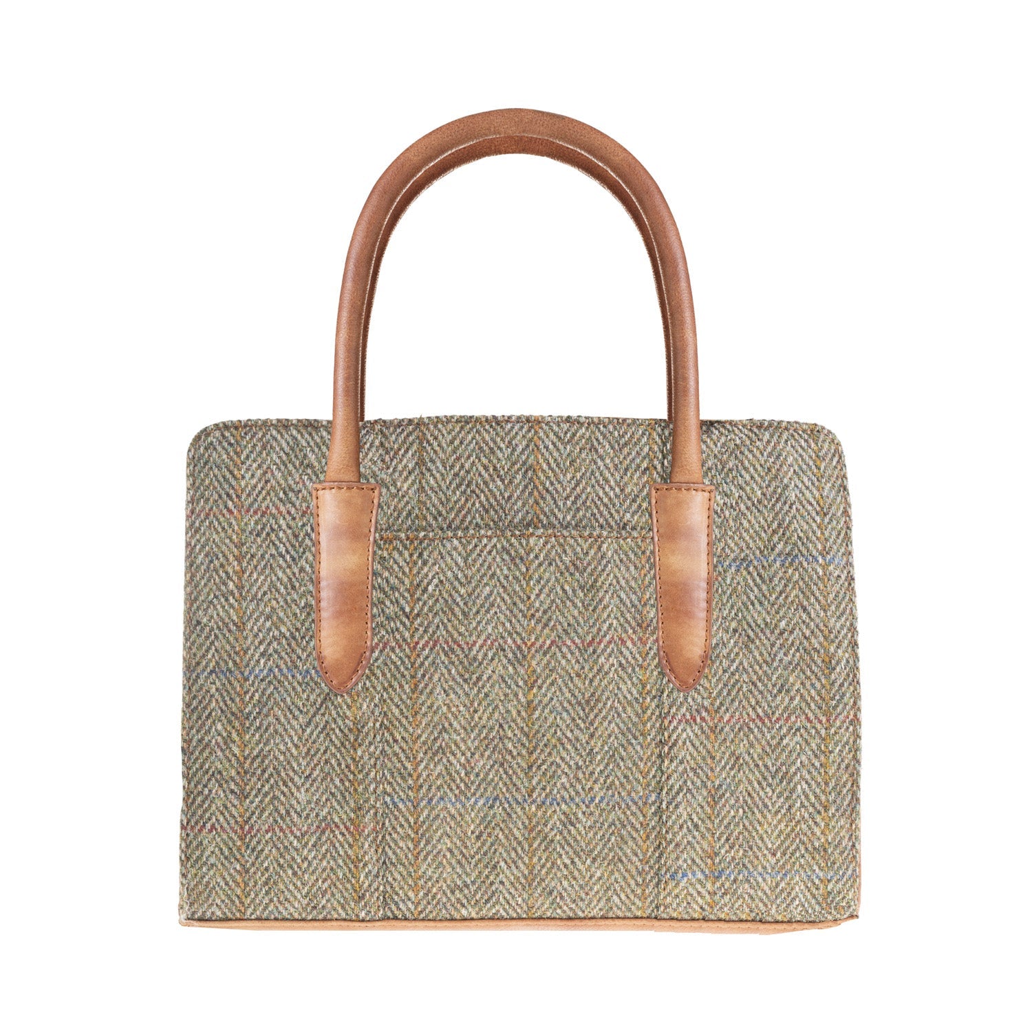 Ladies Harris Tweed Leather Hand Bag Lt Brown Check / Tan