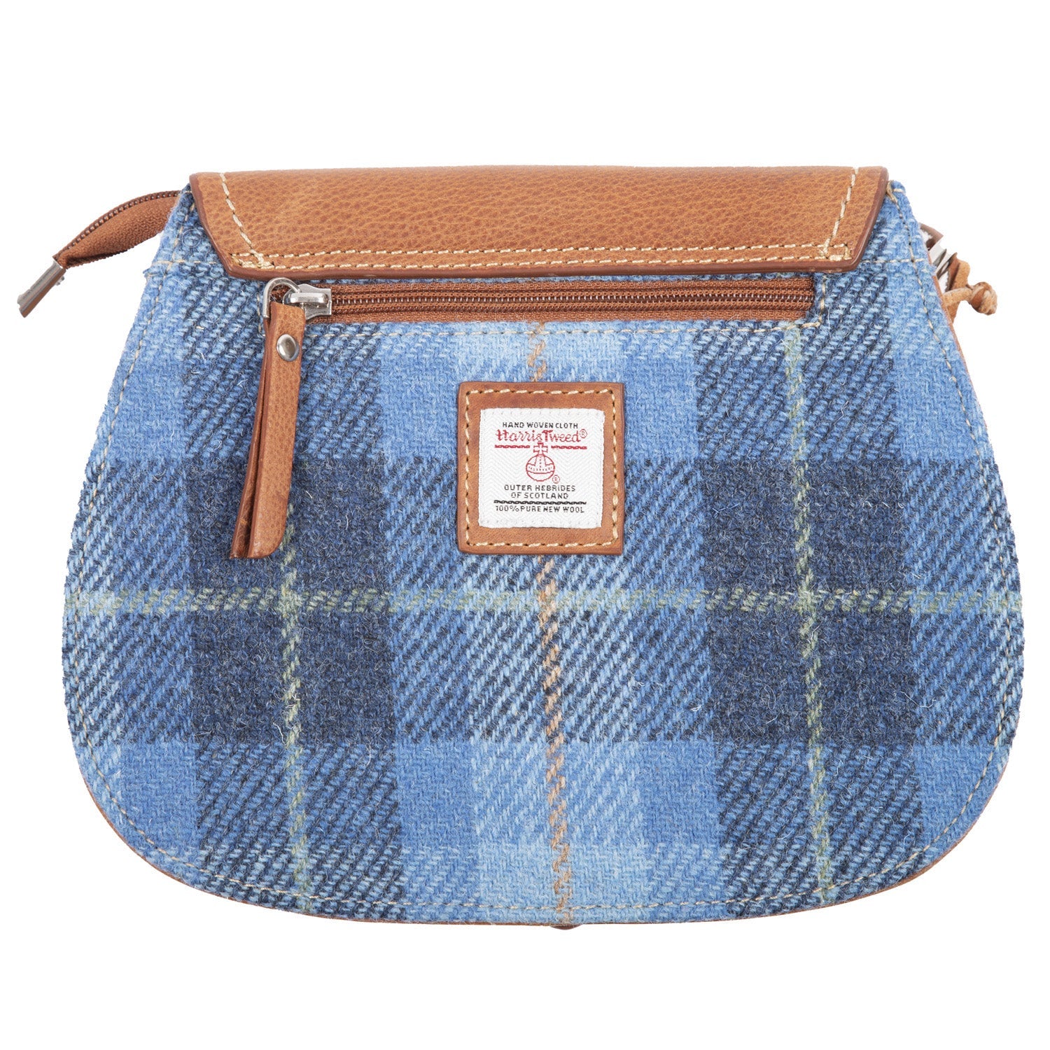 Ladies Harris Tweed Leather Shoulder Bag Blue Check / Tan