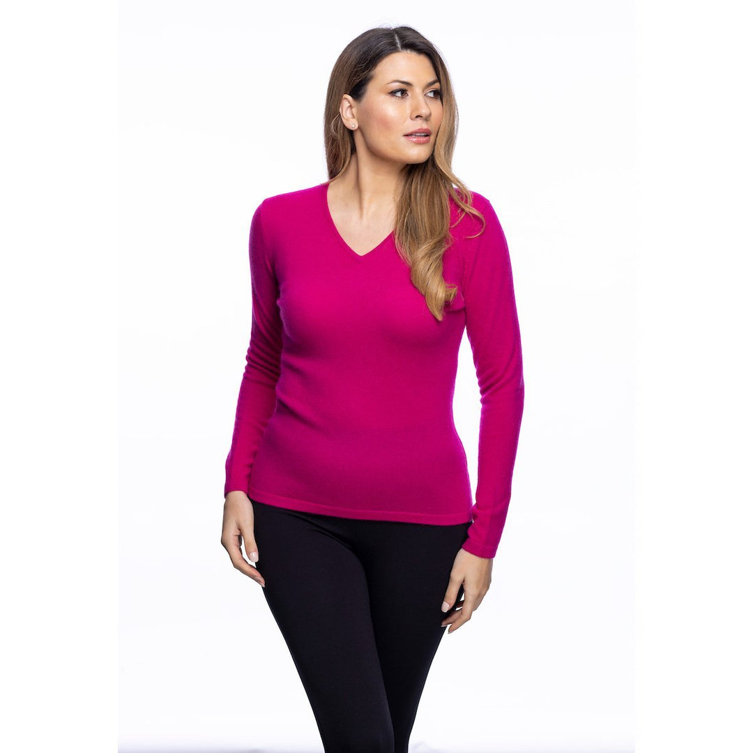 Women's 100% Cashmere V-Neck Jumper Dunedin Cashmere Fuchsia - Dunedin Cashmere